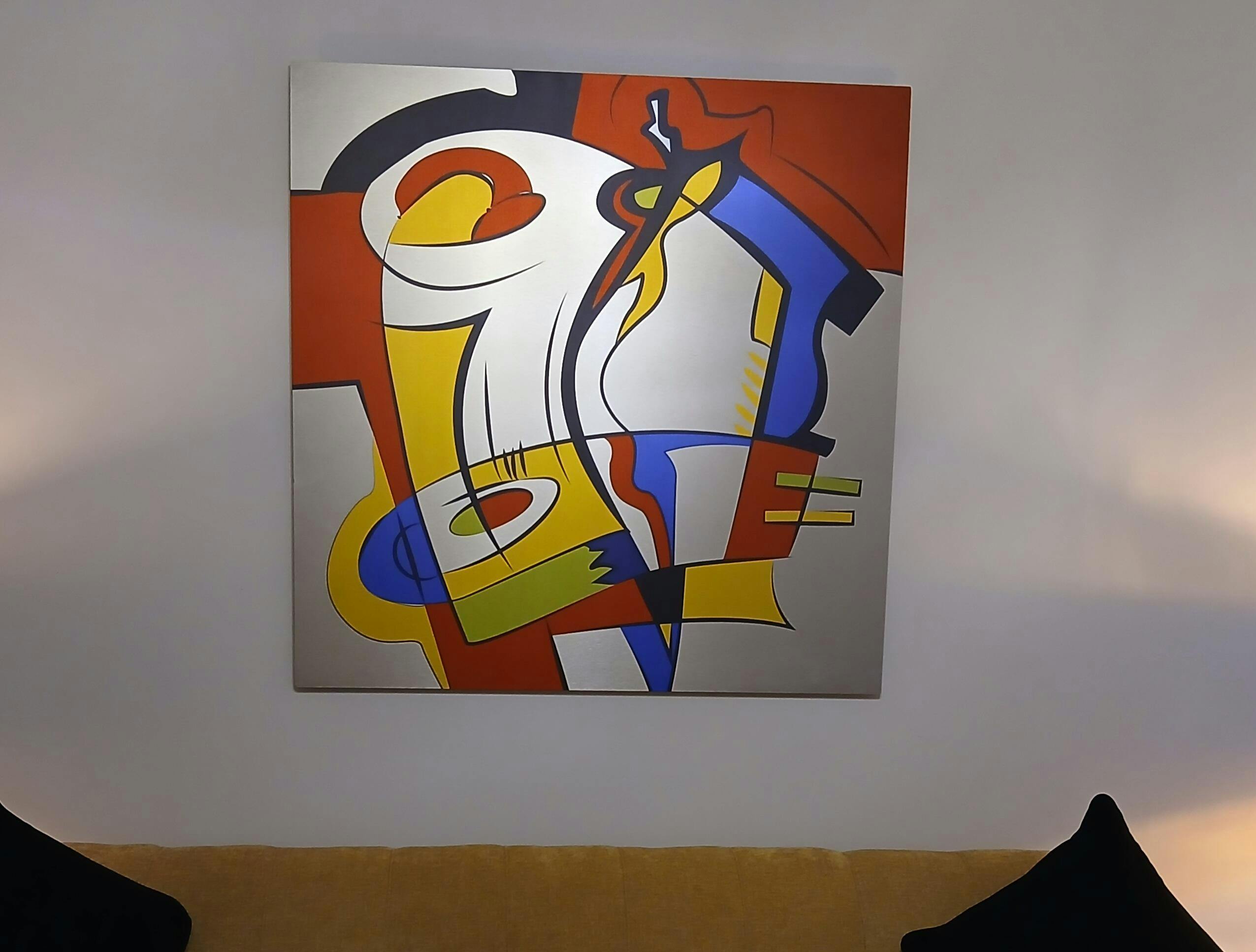 This piece is perfect for my office. I have been eyeballing (pun intended) it for a year to make sure it was “the one”. Art is a very important decision and makes a statement about who you are and also fills the space with the vibe you feel or want to feel. The colors and paint dripping takes it even to the next level for me. I wanted this for what it means to me….