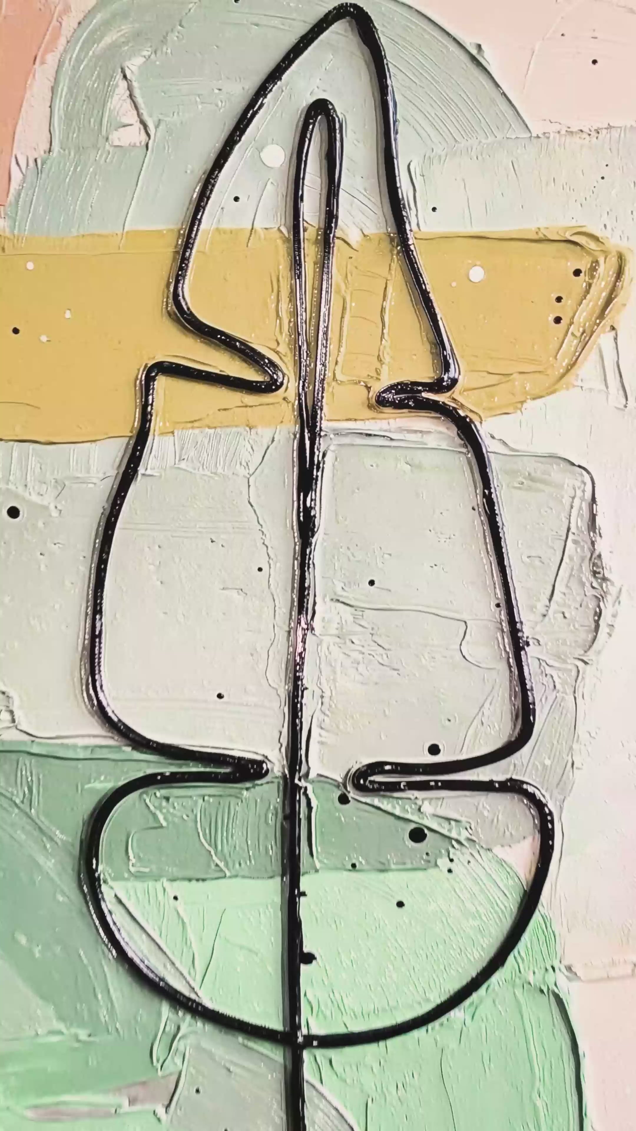 A contemporary dialogue between raw texture and minimalist line art. Sage & Petal Abstract Foliage features a continuous, hand-drawn black leaf outline set against a backdrop of heavily layered impasto blocks in sage green, dusty rose, and ochre. Utilizing our proprietary 3D haptic embossing on a premium aluminum panel, the contrast between the thick, rugged background and the smooth, raised line art creates a sophisticated gallery piece that explores the boundaries of botanical abstraction.
